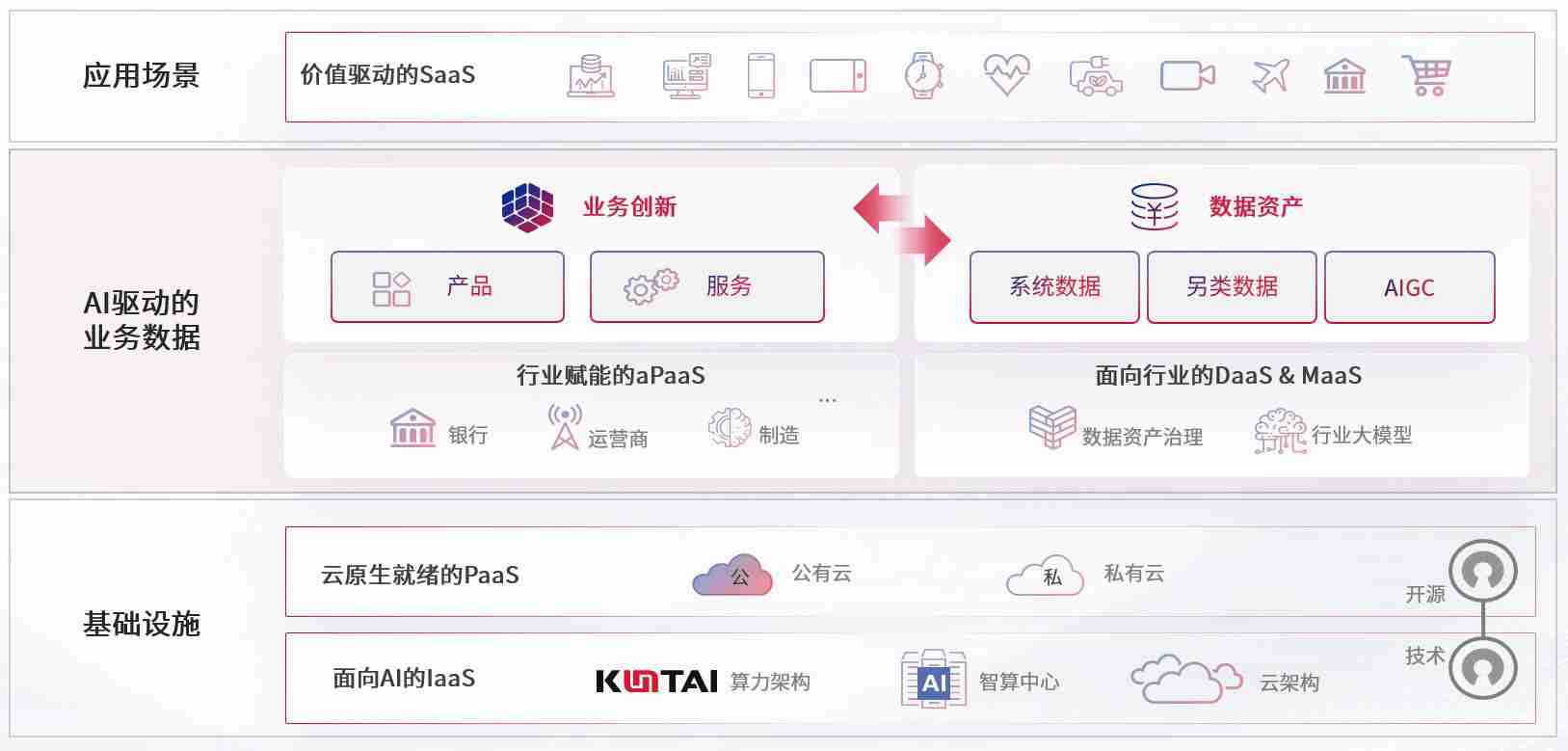 数字时代,,,围绕企业数字化转型的关键要素,,,星空游戏数码开创性的提出数云融合战略和技术体系框架,,,着力在云原生、、、、数字原生、、、AI原生和信创产业上架构产品和服务能力,,为处在不同数字化转型阶段的快消零售、、汽车、、金融、、、、医疗、、政企、、教育、、、、运营商等行业客户提供泛在的敏捷IT能力和融合的数据驱动能力,,,构建跨界融合创新的数字业务场景和新业务模式,,,助力企业级客户建立面向未来的核心能力和竞争优势,,,全面推动社会的数字化、、、、智能化转型升级。。